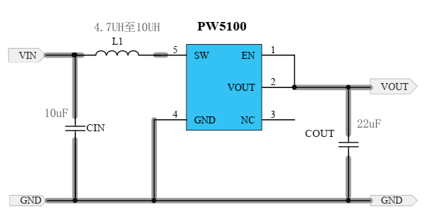 PW5100 是一款大效率、10uA低功耗、低紋波、高工作頻率1.2MHZ的 PFM 同步升壓 DC/DC 變換器。輸入電壓可低0.7V,輸入電壓范圍0.7V-5V之間,輸出電壓可選固定輸出值,從 3.0V,3.3V, 5.0V 的固定輸出電壓.開關電流1.5A.輸出電流可達600MA