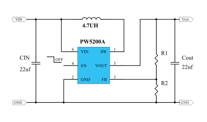 PW5200A能夠提供2.5V和5V之間的可調(diào)輸出電壓,內(nèi)部同步整流開關(guān),節(jié)省了肖特基的情況下提高了效率。PW5200A的輸入電壓是1V-4.4V之間,適合1-2節(jié)干電池或者鋰電池輸入。