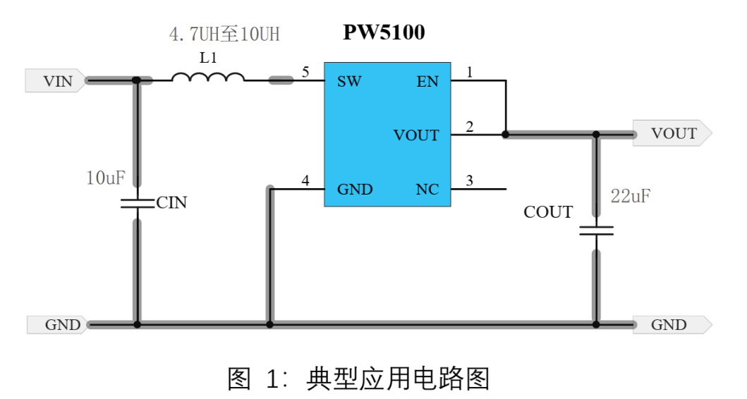 PW5100的效率可達: 95%,超低啟動電壓: 0.7V,具有寬輸入電壓范圍: 0.7V~ 5.0V,輸出電壓可選: 3.0V,3.3V, 5.0V