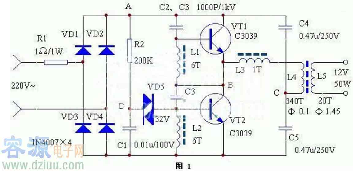 簡易大功率電子變壓器制作 介紹的電子變壓器克服了傳統(tǒng)硅鋼片變壓器體積、重量大、效率低、價格高的缺點(diǎn),電路成熟,性能穩(wěn)定。 本電子變壓器工作原理與開關(guān)電源相似,電路