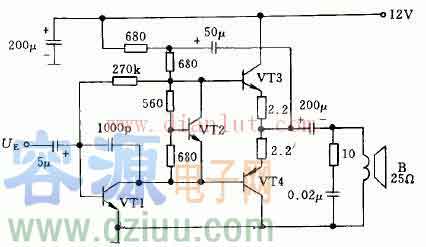 過載保護電路功率為650mW,電源電壓12V,揚聲器Ω。 部份元件規格: VT1:晶體管NB111EH/J VT2:晶體管NR001E VT3:晶體管NA11EB/J VT4:晶體管NAQWEB/J :