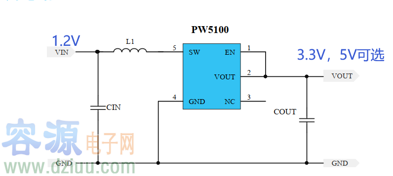 PW5100-1.2V升3.3V芯片,大電流,應用MCU供電,3.3V穩壓源