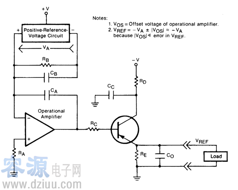 這個圖形說明了一個電路,它提供了精確的負參考電壓。為了滿足精度和穩定性要求,它通過使用一個高增益,穩定的反饋升壓電路集成了一個高精確度的正極參考電壓。該升壓電路包括運算放大器