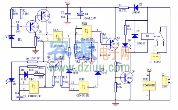 控制器件,紅外接近開關電路是通過檢測發射的紅外線信號是否被發射來判斷前方是否有物體,從而控制繼電器的開關動作來控制
