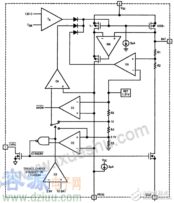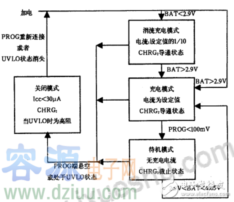 隔離二極管。熱反饋可對(duì)充電電流進(jìn)行調(diào)節(jié),以便在大功率操作或高環(huán)境溫度條件下對(duì)芯片溫度加以限制。充電電壓固定于 4.2V,而充電電流可通過一個(gè)電阻器進(jìn)行外部設(shè)置。當(dāng)充電電流在達(dá)到最終浮充電壓之后降至設(shè)定值