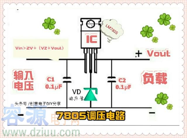 在7805的②腳(地端)與地之間串入一個穩壓管,則7805的輸出電壓Vout=Vz+5V。這里的Vz為穩壓管的穩壓值。假設我們需要一個11.2V的穩定電壓,那么只要在7805的②腳與地之間接一個6.2V的穩壓管即可。
