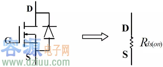 即內部二極管的等效電路,可用一電壓降等效,此二極管為MOSFET 的體二極管,多數情況下,因其特性很差,要避免使用。