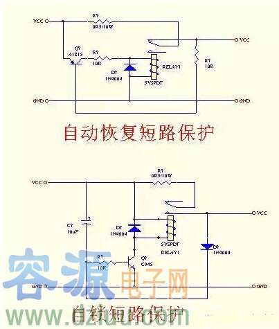 過載保護(hù)電路功率為650mW,電源電壓12V,揚(yáng)聲器Ω。 部份元件規(guī)格: VT1:晶體管NB111EH/J VT2:晶體管NR001E VT3:晶體管NA11EB/J VT4:晶體管NAQWEB/J :