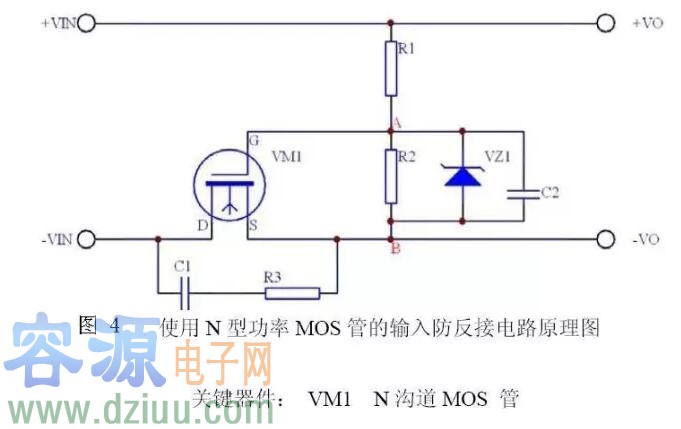 具體N溝道MOS管防反接保護電路電路如圖3示
