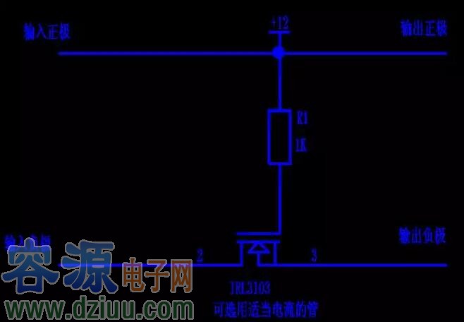 N溝道MOS管通過S管腳和D管腳串接于電源和負載之間,電阻R1為MOS管提供電壓偏置,利用MOS管的開關特性控制電路的導通和斷開,從而防止電源反接給負載帶來損壞。正接時候,R1提供VGS電壓,MOS飽和導通。反接的時候MOS不能導通,所以起到防反接作用。功率MOS管的Rds(on)只有20mΩ實際損耗很小,2A的電流,功耗為(2×2)×0.02=0.08W根本不用外加散熱片。解決了現有采用二極管電源防反接方案存在的壓降和功耗過大的問題。