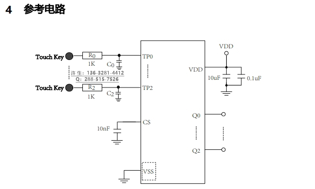 VK36Q4 工作電壓/待機(jī)電流:2.4V-5.5V/6A(3V) 感應(yīng)通道數(shù):4 輸出方式:直接輸出抗干擾/待機(jī)電流小,抗電源及手機(jī)干擾,可通過CAP調(diào)節(jié)靈敏度 封裝:DFN10(3*3超小體積)