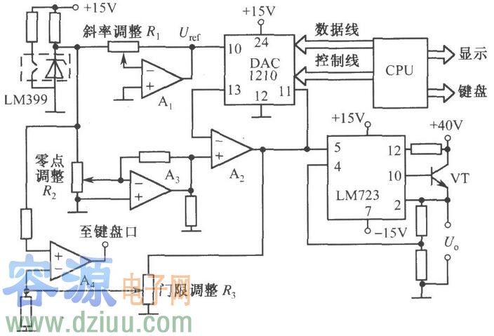 KBC-II型可編程電源由數模轉換器、基準電壓源、電壓比較器、運算放大器Al~A3、輸出電壓可調的穩壓器、CPU、顯示器及鍵盤等幾部分組成,輸出電壓的大小與輸出順序由鍵盤設定,并由計算