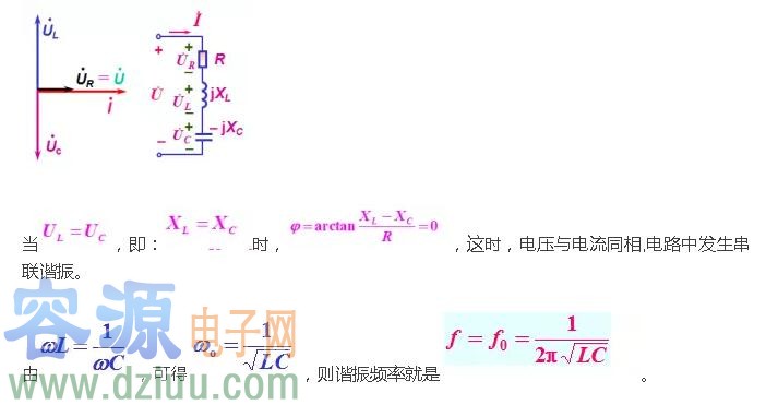 在含有電阻、電感和電容的交流電路中,電路兩端電壓與其電流一般是不同相的,若調節電路參數或電源頻率使電流與電源電壓同相,電路呈電阻性,稱這時電路的工作狀態為諧振。