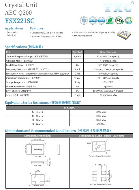 YXC晶振YSX221SC系列,頻率為16.384MHz,工作溫度-40~125℃,以下為YSX221SC系列規格書。