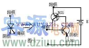 晶閘管工作原理:第一,我們可以把從陰極向上數的第一、二、三層看面是一只NPN?型號晶體管,而二、三四層組成另一只PNP?型晶體管。其中第二、第三層為兩管交迭共用。這樣就可畫出圖表-27(C)的等效電路圖來分析。當在陽極和陰極之間加上一個正向電壓Ea?,又在控制極G和陰極C之間(相當BG1?的基一射間)輸入一個正的觸發信號,BG1?將產生基極電流Ib1?,經放大,BG1?將有一個放大了β1?倍的集電極電流IC1?。因為BG1?集電極與BG2?基極相連,IC1?又是BG2?的基極電流Ib2?。BG2?又把比Ib2?(Ib1?)放大了β2?的集電極電流IC2?送回BG1?的基極放大。如此循環放大,直到BG1?、BG2?完全導通。實際這一過程是“一觸即發”的過程,對晶閘管來說,觸發信號加入控制極,晶閘管立即導通。導通的時間主要決定于晶閘管的性能。