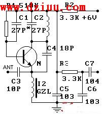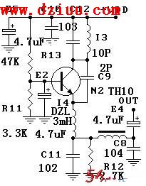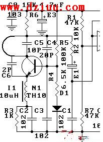 高頻振蕩器采用電容三點式振蕩器,振蕩頻率和接收頻率相一致.而間歇振蕩又是在高頻振蕩的過程中產(chǎn)生的,反過來又控制著高頻振蕩器的振蕩和間歇,間歇振蕩的頻率是由電路的參數(shù)決定的,