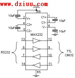 MAX232 標(biāo)準(zhǔn)電路圖-應(yīng)用電路圖 <<版權(quán)聲明:本文由容源電子網(wǎng)(www_dziuu_com)整理提供,部分內(nèi)容來源于網(wǎng)絡(luò),如有侵犯到你的權(quán)利請與我們聯(lián)系更正。》