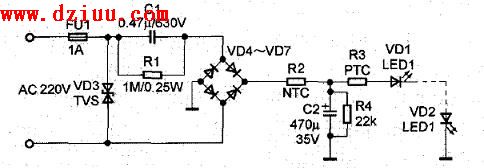 LED驅動電源要有抑制浪涌的侵入、保護LED不被損壞的能力。本電路用負溫度系數熱敏電阻來限制電流的突變,容-源-電-子-網-為你提供技術支持