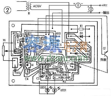 LM723、MC1723等。印刷電路見圖。 <<版權(quán)聲明:本文由容源電子網(wǎng)(www_dziuu_com)整理提供,部分內(nèi)容來源于網(wǎng)絡(luò),如有侵犯到你的權(quán)利請與我們聯(lián)系更正。》