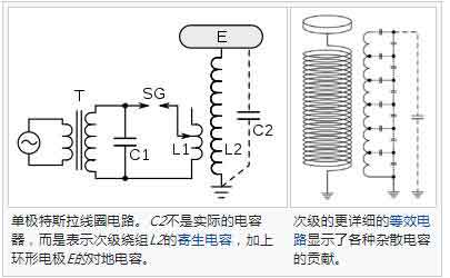為了產(chǎn)生最大輸出電壓,調(diào)節(jié)初級(jí)和次級(jí)調(diào)諧電路以使它們彼此諧振。]初級(jí)和次級(jí)電路 的諧振頻率,由每個(gè)電路中的電感和電容決定