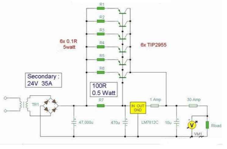 下面為大家介紹lm7812擴流穩壓電路圖: