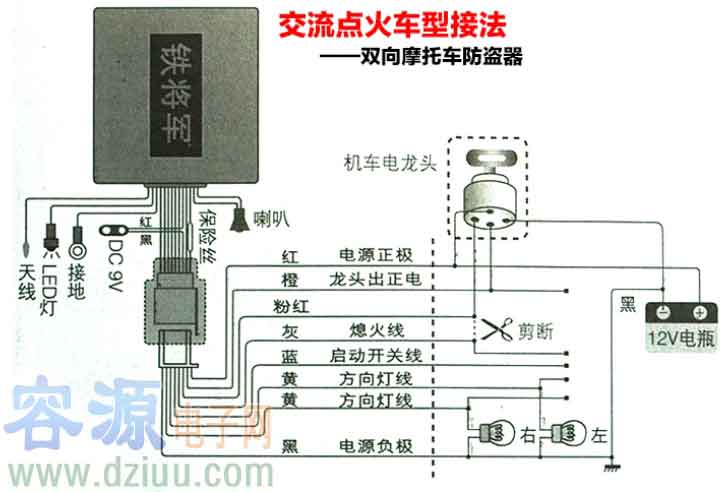 新款鐵將軍摩托車防盜器接線圖