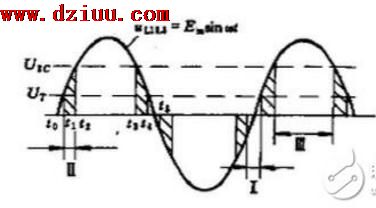 。圖中交流電壓分三個區域,Ⅰ區為-10V~+10V范圍,稱為死區,在此區域中加入輸入信號時不能使SSR導通。Ⅱ區為10~25V和-(10~25)V范圍,稱為響應區,在此區域內只要加入輸入信號,SSR立即導通。Ⅲ區為幅值大于25V的范圍,稱為抑制區在此區域內加入輸入信號,SSR的導通被抑制。