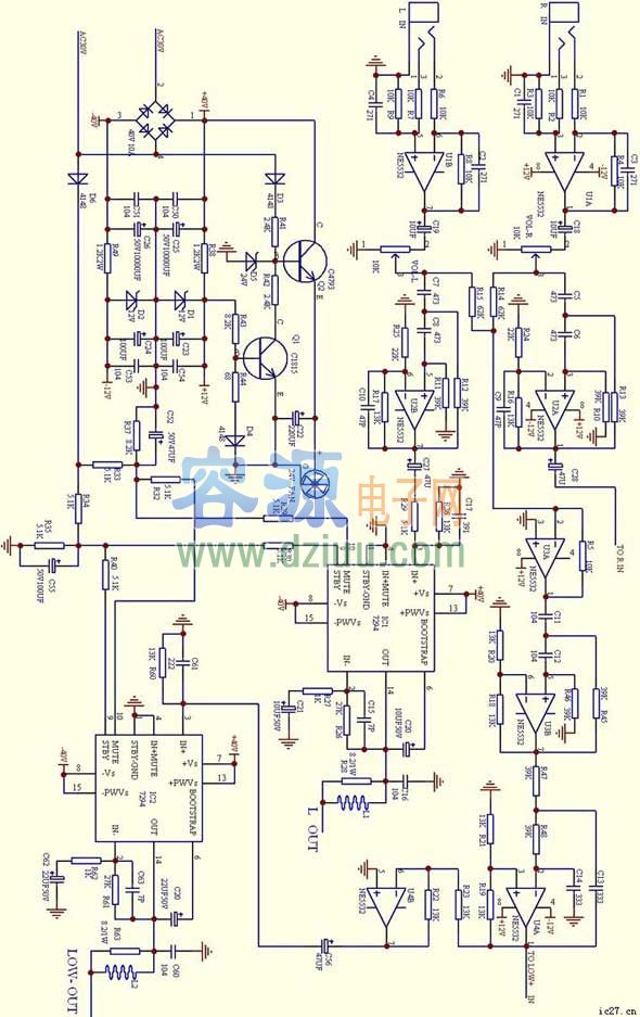 分享漫步者低音炮電路圖(TDA1521,NE5532)