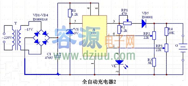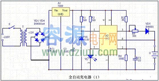 ,充電器主要由電源電路、電壓比較器及指示電路等組成。《版權(quán)聲明:本文由容源電子網(wǎng)(www_dziuu_com)整理提供,部分內(nèi)容來(lái)源于網(wǎng)絡(luò),如有侵犯到你的權(quán)利請(qǐng)與我們聯(lián)系更正。》