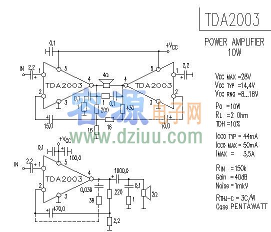 tda2003應(yīng)用電路: