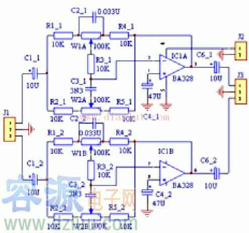 用雙電源供電的運(yùn)放或音調(diào)控制專用BA328 集成電路制作的音調(diào)控制電路,花費(fèi)較大而且制作麻煩;衰減式音調(diào)控制電路制作簡(jiǎn)單卻又聽(tīng)感不好,對(duì)信號(hào)衰減也較大。這里選用廉價(jià)易購(gòu)的BA328制作一款音調(diào)控制電路,實(shí)