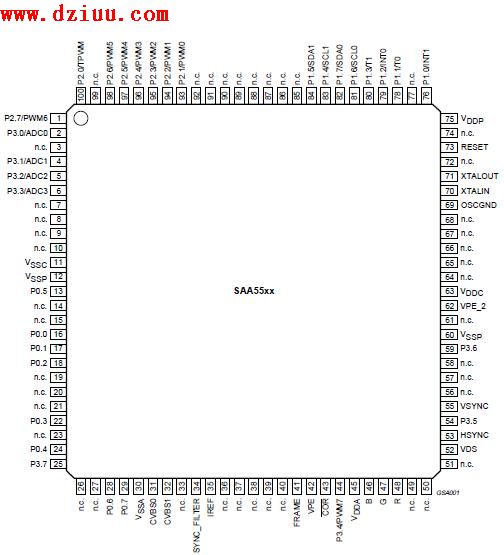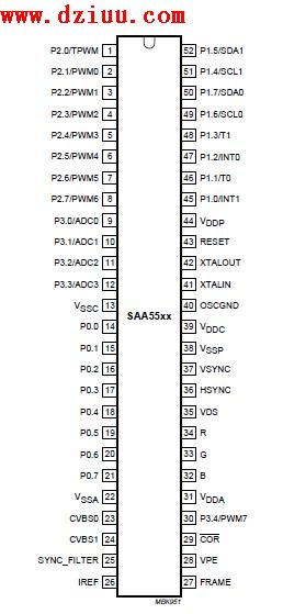SAA5542及SAA55系列引腳功能圖: