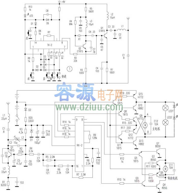 介紹遙控玩具車電路圖 <<版權聲明:本文由容源電子網(www_dziuu_com)整理提供,部分內容來源于網絡,如有侵犯到你的權利請與我們聯系更正。》