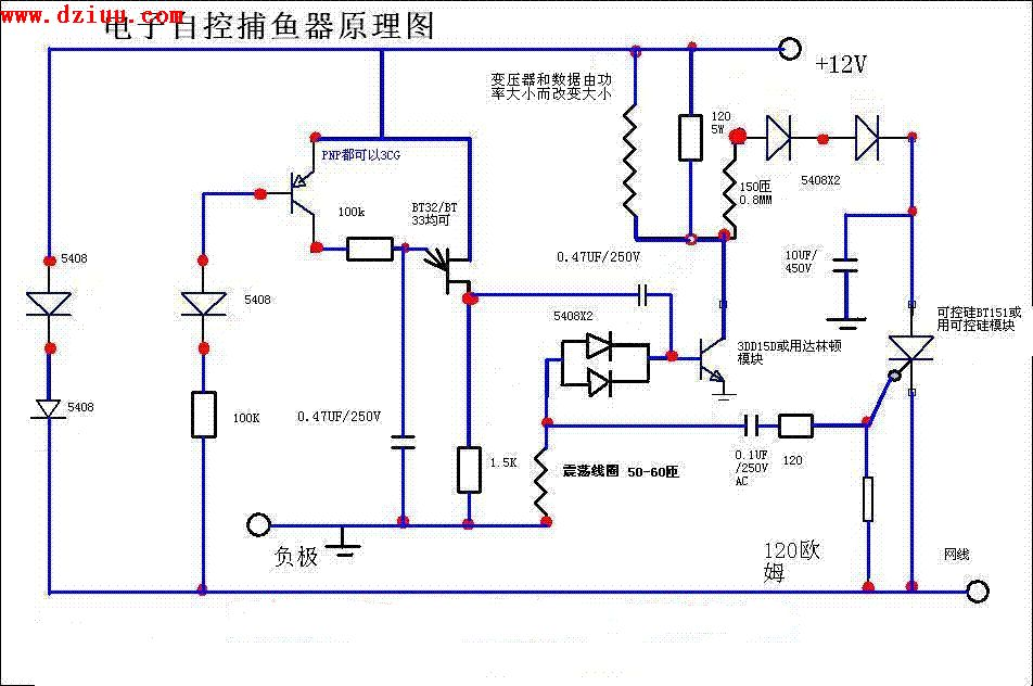 為大家提供一個分離元器件的電子捕魚器電路圖,元器件少,制作簡單,成功率高.
