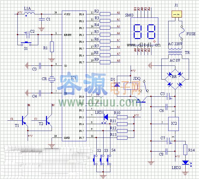 電路及簡單,主要都是通過單片機AT89C2051來控制的。電路中220伏交流電源