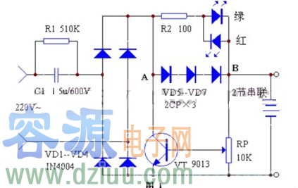 自制最簡單干電池充電器電路圖(原理圖):干電池應用場合很多,遙控器應用干電池是最常見的一種,還有就是兒童玩具應用干電池也很多,只要是充電電池,就可以進行二次充電使用,其實干電池充電電路原理很簡單,自制最簡單干電池充電器電路也很容易,對于電子技術要求不高,只要會一點電路基本常識就可以輕松制作出來,如下圖所示:電子元器件很少,核心器件就是一個多抽頭變壓器,可以輸出固定電壓AC12V、AC8V、AC6V等就能完成。電路原理圖如下: