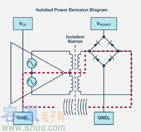 無(wú)返回途徑:這些電流不能穿過(guò)隔離柵,沒(méi)有返回的物理途徑,會(huì)形成偶極天線,進(jìn)而產(chǎn)生輻射