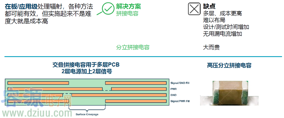 拼接電容:為減少偶極輻射,需要為高頻共模電流提供一個(gè)低阻抗返回路徑