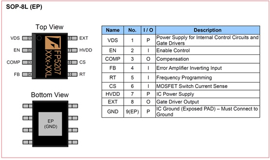 FP5207腳位定義圖以及管腳說明