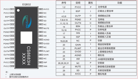 日前,深圳市永阜康科技有限公司大力推廣一顆2x80W雙聲道大功率D類音頻功放IC-CS8685H,采用獨有的EQB-32(頂部散熱焊盤外接散熱器)封裝,強勁的驅動能力能夠保證大功率輸出,在26V電源電壓驅動2個4歐揚聲器、無需任何功率或電流限制、實現大功率高效率的音頻輸出。充分滿足條形音箱、后裝汽車音頻解決方案、大功率藍牙音箱的使用需求.