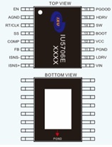1、采用IU5706高效同步升壓控制器。此芯片4.5V-24V輸入電壓(涵蓋2-5節鋰電、鉛酸電池作為電源的應用),輸出電壓最高33V,并且能夠為負載提供8A持續電流,效率高達96%,采用EQA-16封裝。