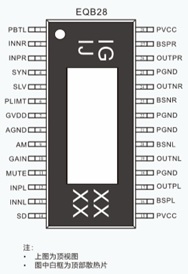 2、采用IU8689大功率D類音頻功放IC,工作電壓4.5V-28V,25V提供2x70W/4歐 ( THD+N=1%)持續功率輸出;28V提供100W/4歐 ( THD+N=10%)持續功率輸出;低Rdson(相比TPA3116更小),保證音質有足夠的下潛度;采用EQB-28封裝(散熱片在背部,支持外接散熱器)。