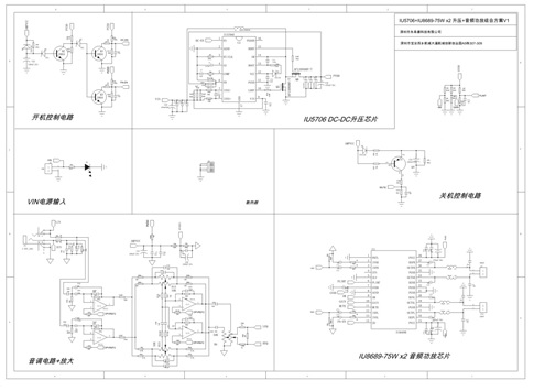3、IU5706支持12V升壓至24V,給兩顆IU8689供電,輸出4x65W/4歐 ( THD+N=1%);IU8689主從模式可實現多顆芯片無限級聯功率輸出,此應用非常適合車載音頻后裝市場。