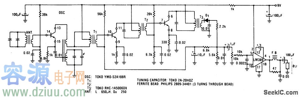 TDA2005S構(gòu)成的20w公共汽車收音機及擴音機電路