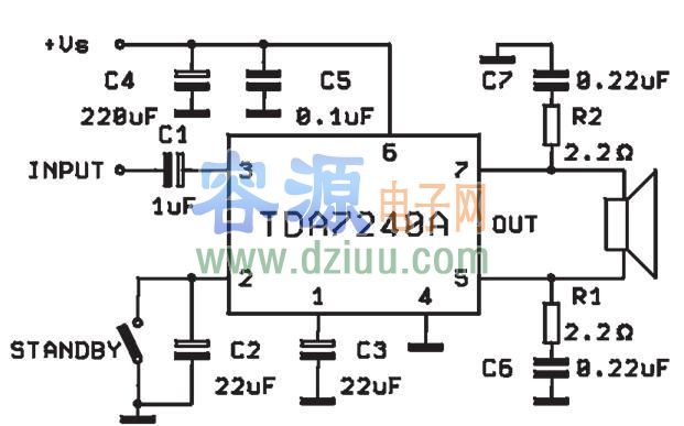 基于TDA7240A制作的20W單電源BTL功放電路圖