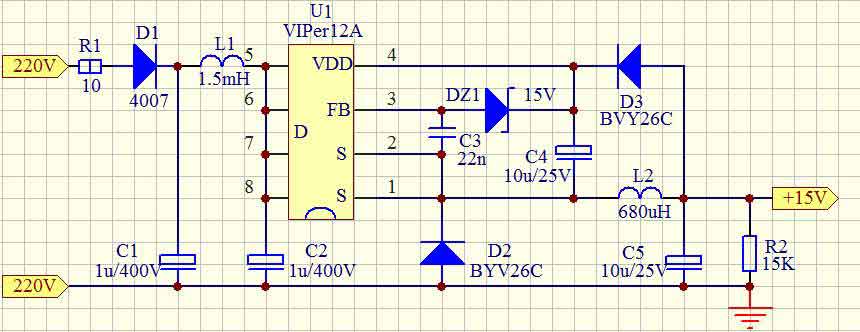 viper22a引腳功能電壓;viper22a是單片小功率開關電源。viper22a可以與viper12a代換。但是要注意功率。viper22a具有固定60kHz的開關頻率