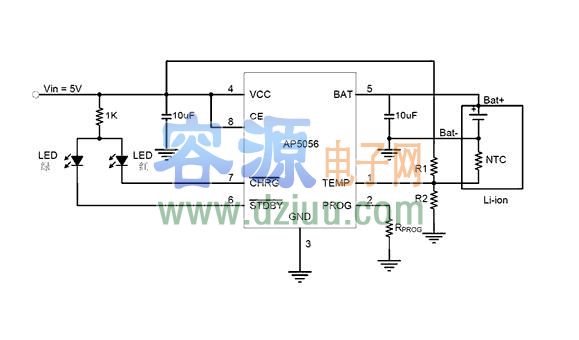5056充電IC是對4.2V鋰離子電池充電電路,5056提供一個小型簡單的充電電路