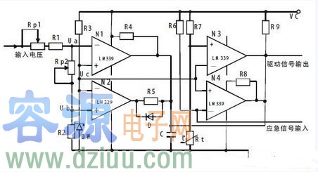 LM339集成塊內部裝有四個獨立的電壓比較器,該電壓比較器的特點是:1)失調電壓小,典型值為2mV;2)電源電壓范圍寬,單電源為2-36V,雙電" />