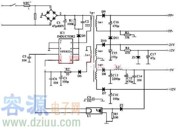 開關(guān)電源TOP261電路圖(筆記本適配器電路)
