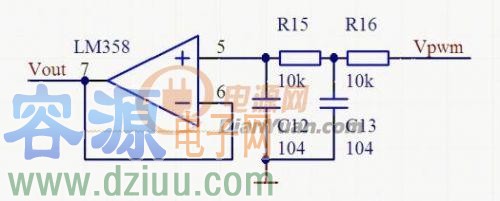 由于單片機供電電壓3.3V,因此Vout=Vpwm*D=3.3*D,D為占空比。Vout再經R10,R14分壓得到Vref.
